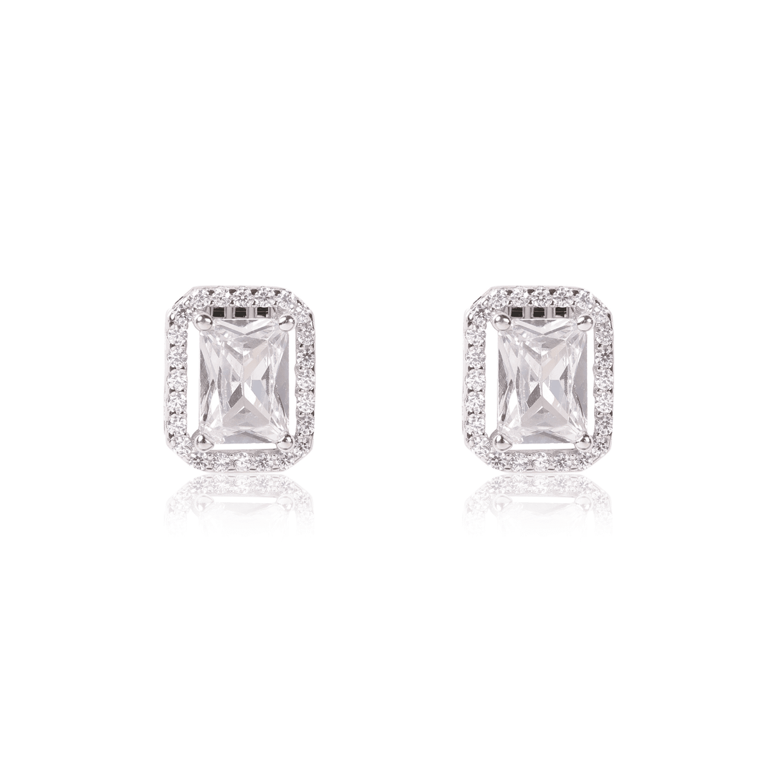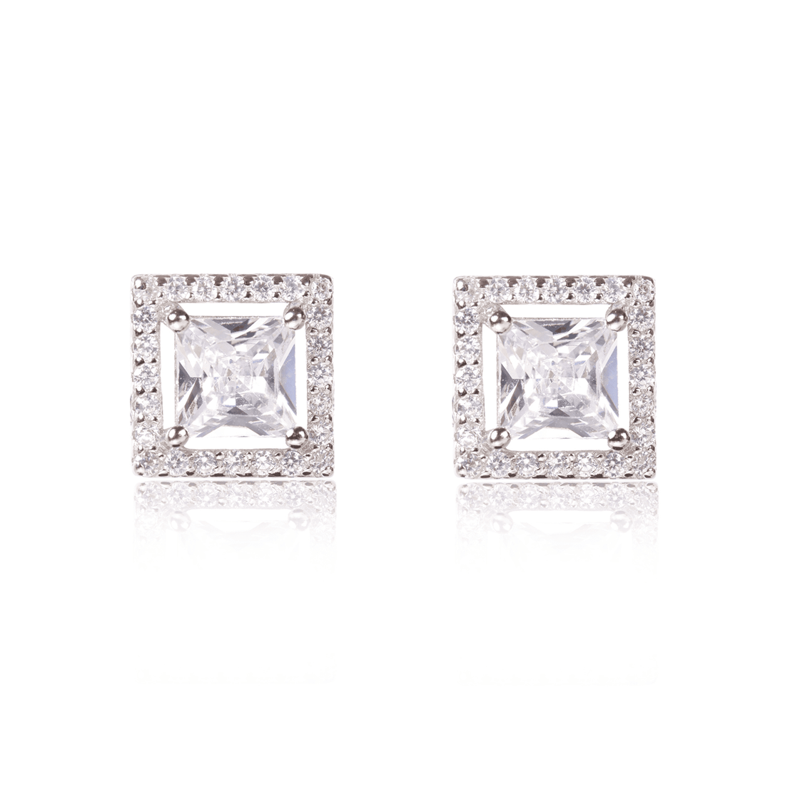 Shining with rhodium-plated sterling silver and set with our signature 'halo' squares, the Halo Square...