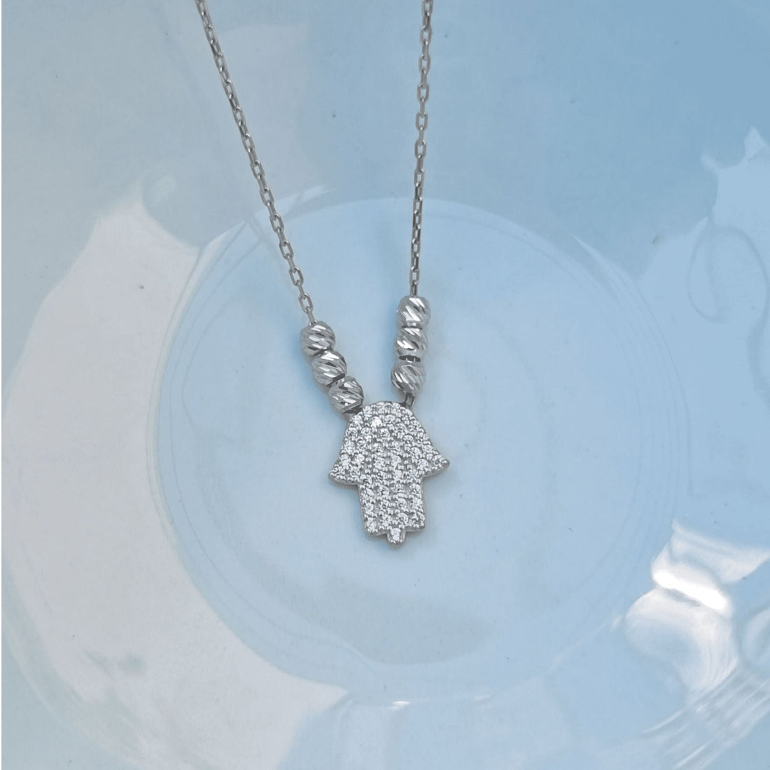 Silver Evil Eye With Hamsa Hand Charm Necklace