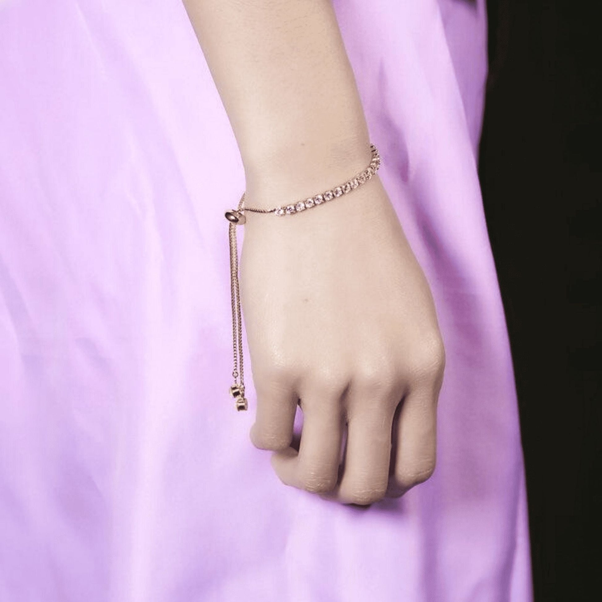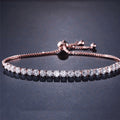 This adjustable tennis bracelet is handmade using Rose Gold E-coated sterling silver and is perfect for gifts.