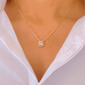Give yourself a break from your usual routine and treat yourself to the beauty of this necklace. The round halo & chain are designed for a stylish look that you can wear with anything. All you need to do is put on the necklace and you'll be ready to go, any day, any time.