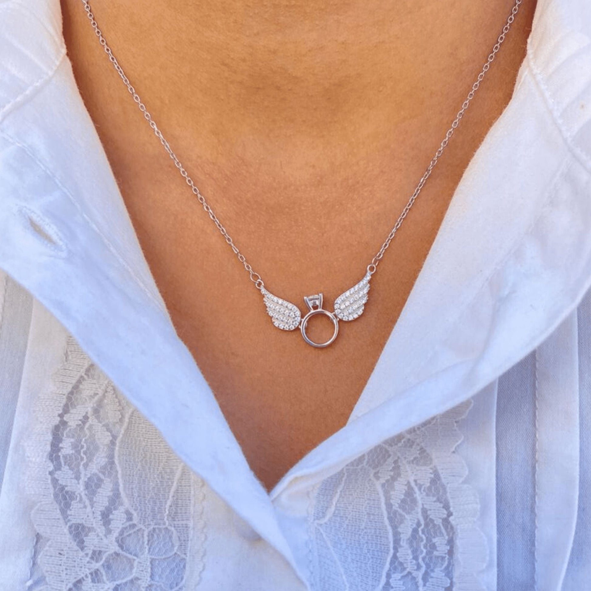 This Silver Angel's Ring Necklace is an essential piece to add to your jewelry collection. Its quality and detail are perfect for any occasion, whether you're looking for a gift or adding a special touch of style to your wardrobe. The elegant design of the piece makes it versatile enough to be worn with any outfit.