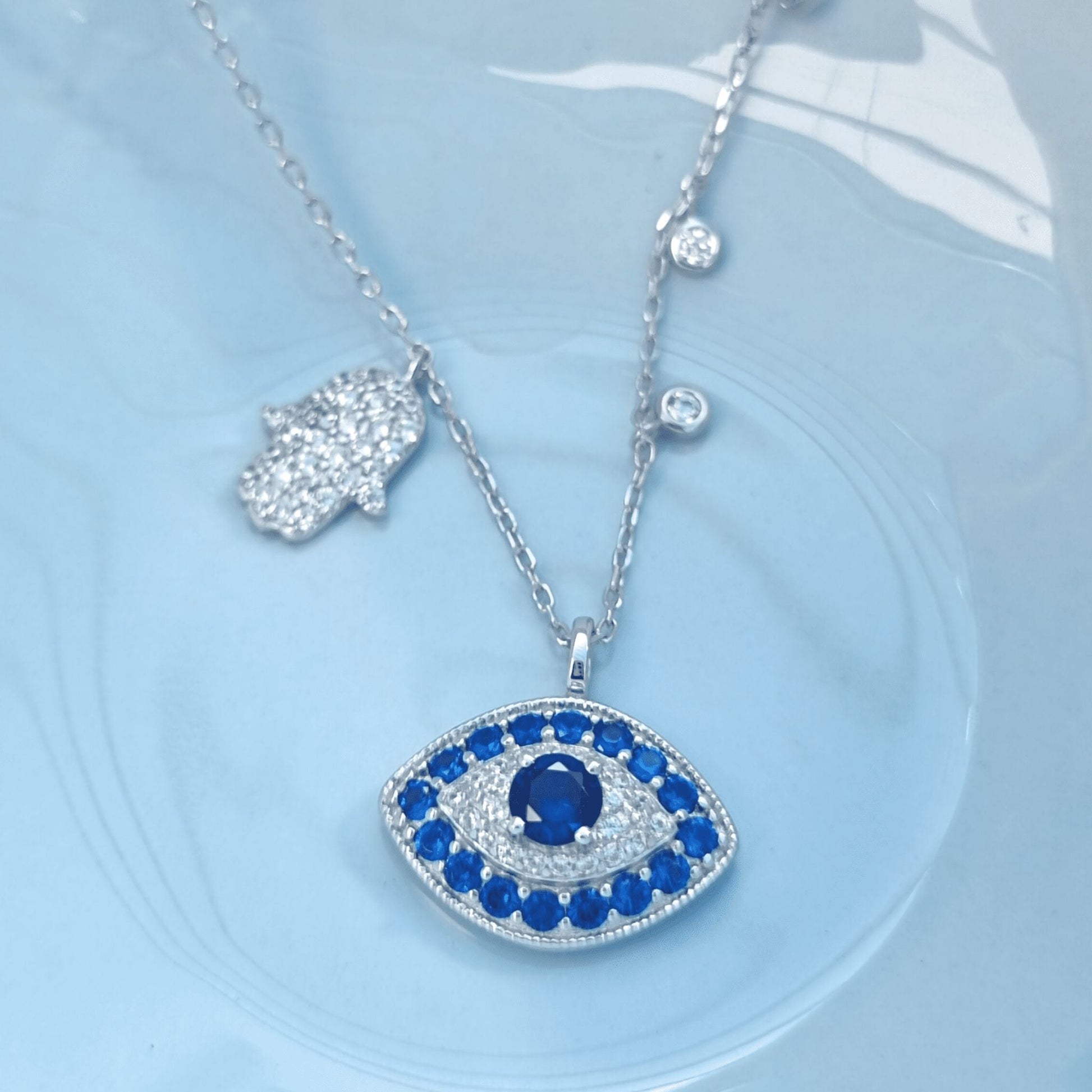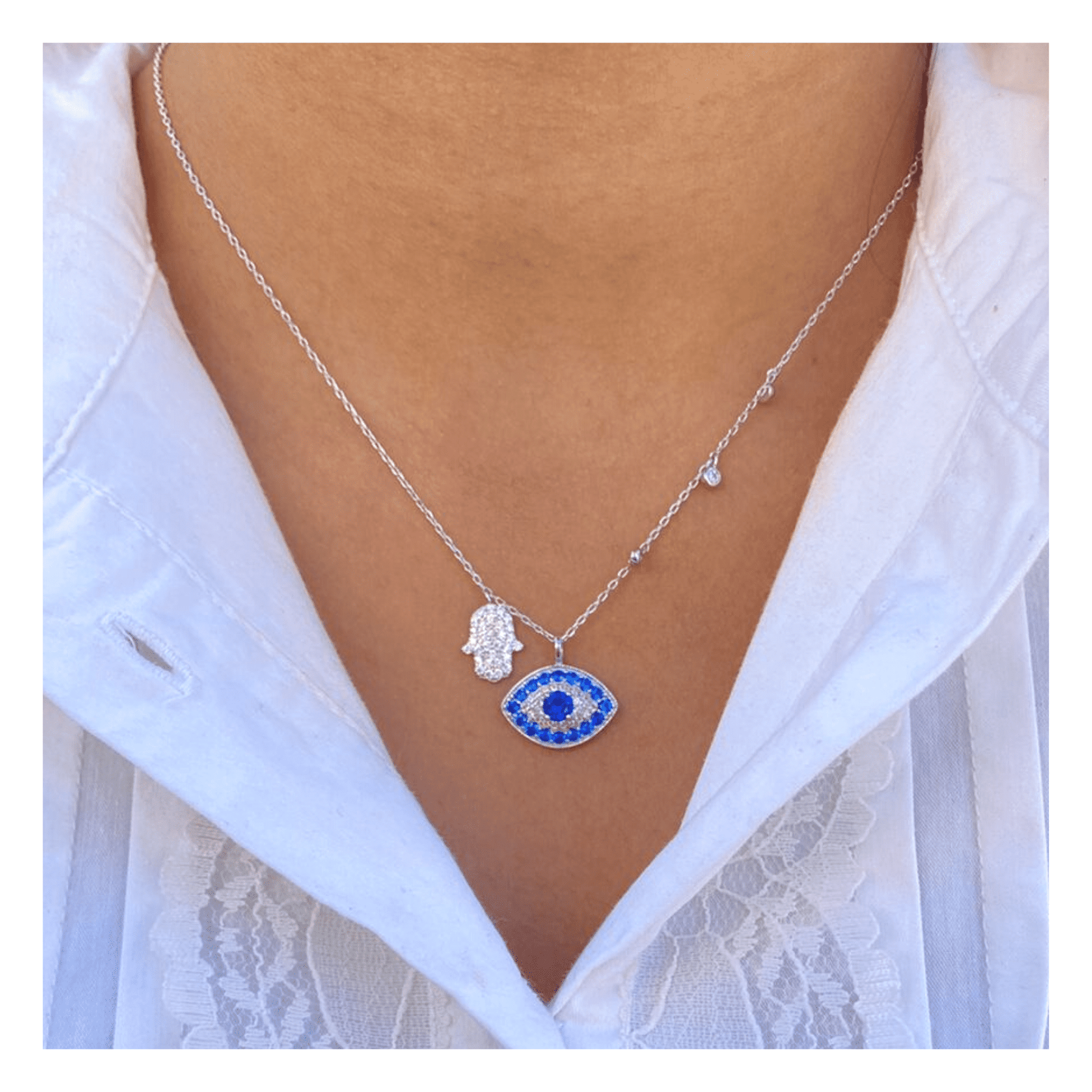 Silver Evil Eye With Hamsa Hand Charm Necklace
