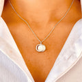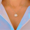 The halo love ring is a delicate and dainty necklace, great for a present for a loved one. The necklace is carefully handmade from 925 sterling silver and features mother of pearl, the symbol of the purity and honesty of love.