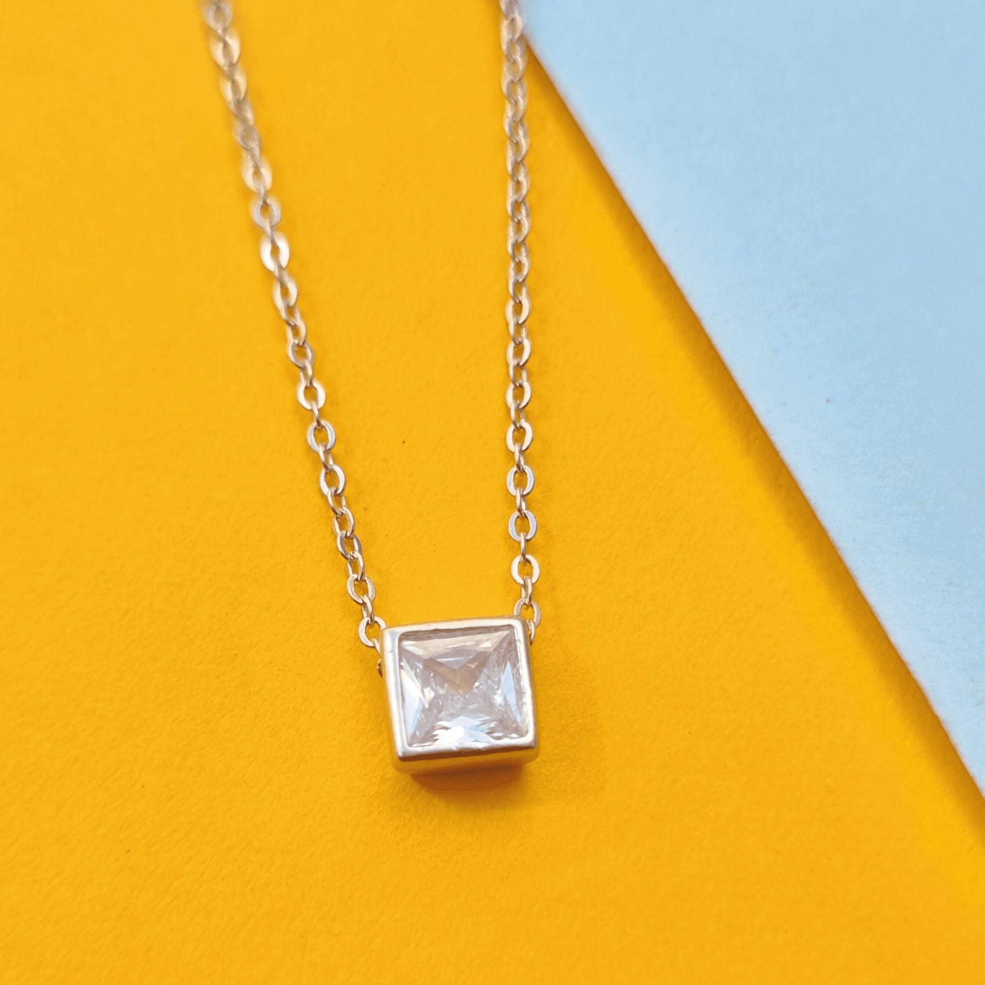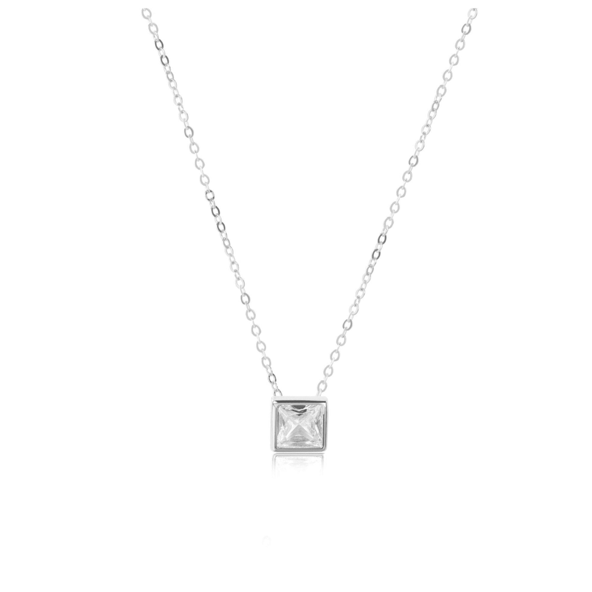 Silver Solitaire Square Necklace